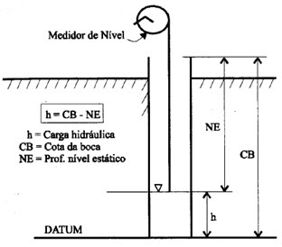 A operação da rede de observação consiste em medir periodicamente os níveis d’água nos poços, com o objetivo de obter a distribuição espacial das cargas hidráulicas do aquífero. A figura abaixo mostra o esquema de medição do nível da água.